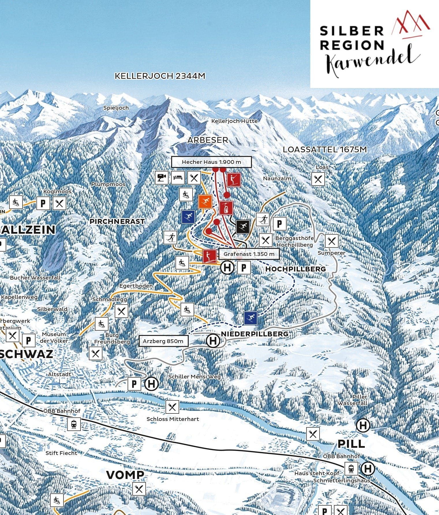 Weerberg is located 900 metres high on a plateau above the Inntal valley, away from the heavy traffic routes. It therefore offers an impressive panoramic view of the Karwendel and Rofan mountains in the north, the Kellerjoch in the east and also of Innsbruck, which is approx. 25 km away. A day trip to the beautiful city which hosted the 1964 and 1976 Olympics is a must! A 30 km journey in the opposite direction leads you to the wonderful Zillertal and its almost endless choice of pistes. So, due to its central location, Weerberg is an ideal base for all kinds of excursions. Besides, with a stretch of 14 km, Weerberg is also one of the longest villages in Austria.Ski Region Innsbruck